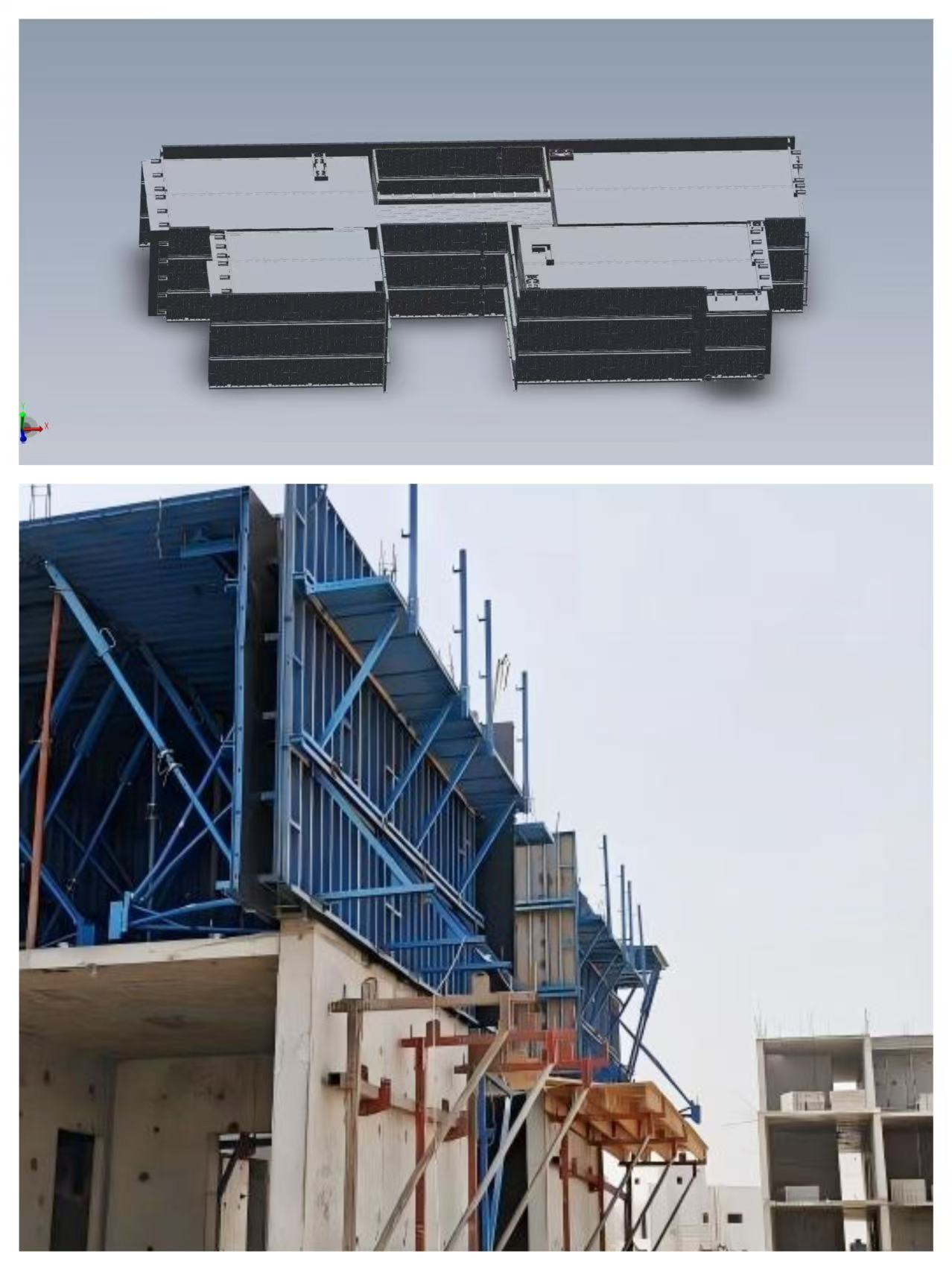 East Asia High-Rise Residential Project: This project adopted cantilever bracket formwork to meet building formwork needs. The system, lifted by tower cranes, allows simultaneous elevation of the formwork and brackets, ensuring fast, simple, and safe operation. With lower construction costs, it maintains high efficiency and strict cost control. Applicable to inner and outer walls, core shear walls, large columns, irregular columns, bridge piers, and silos, it provides a reliable formwork, support, and working platform solution for vertical concrete structures.