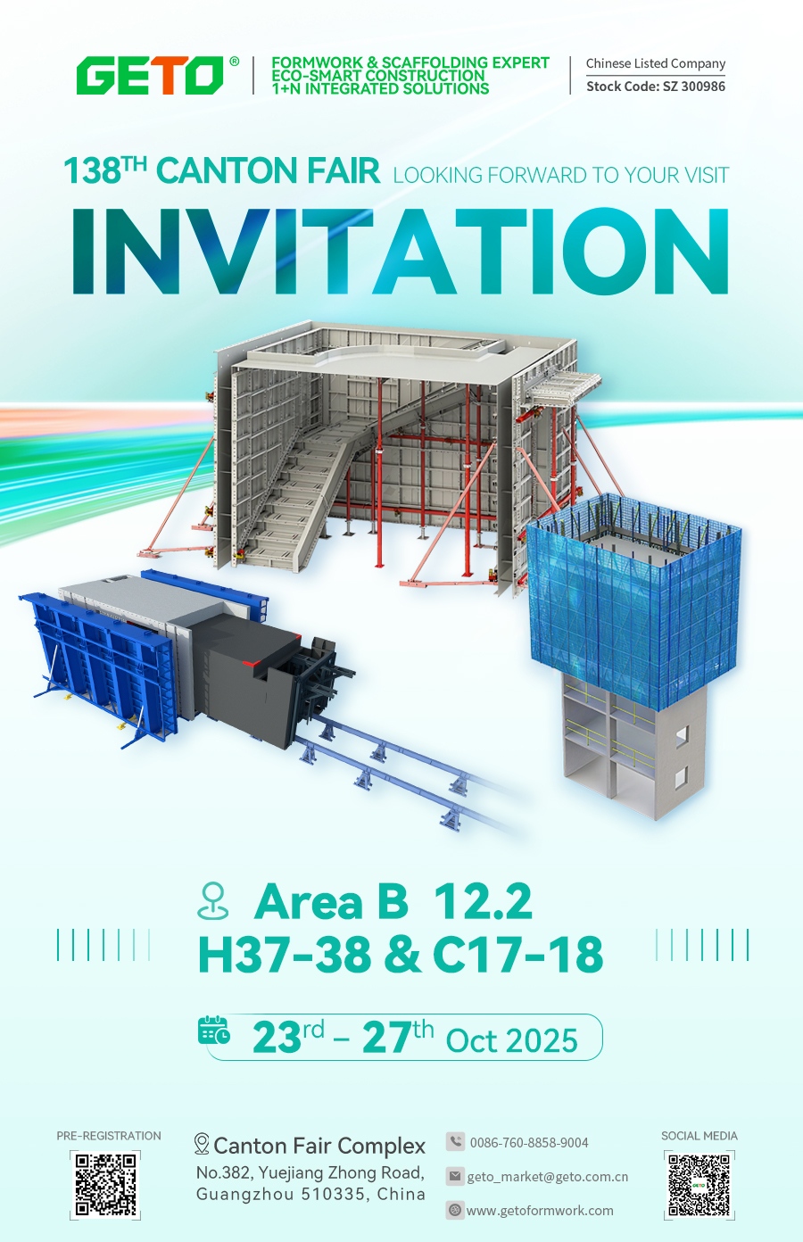 Golden October, meet in Guangzhou! The 138th China Import and Export Fair (Canton Fair) will be grandly held from October 23–27, 2025 at the Canton Fair Complex. GETO New Materials sincerely invites you to visit our booth and explore together the latest innovations in the construction industry and new opportunities for global cooperation.